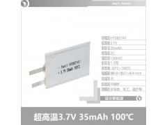 超薄微型高温100°锂电池082741 3.7V 35mAh 2C纸片高温软包聚合物锂电池