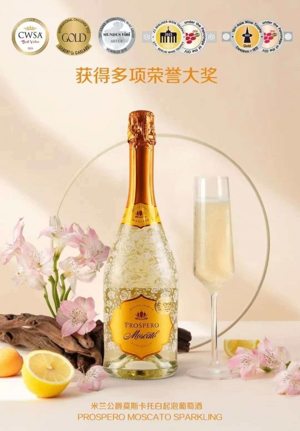 在众多莫斯卡托产品中,米兰公爵莫斯卡托白起泡葡萄酒是一款具有代表性的产品。