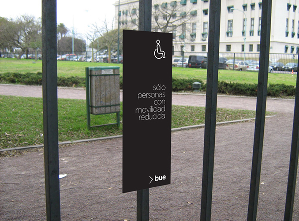Bando Studio针对布宜诺斯艾利斯的缩写“bue”设计了简单大气的logo,并且创造了一句城市标语“find the city”,引导人们在寻路的同时去发现这座城市的一切可能。使用蓝粉黄绿这四种颜色区分不同类型的公共区域,并针对不同的公共区域设计了与之相对应的标识,导视牌采用黑底白字配上区域代表色块,视觉效果良好,信息传达明确。
