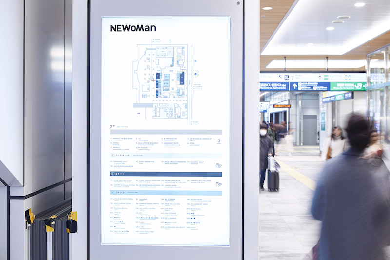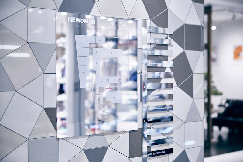 NEWoMan商场位于东京新宿地铁站新南口,百貨跟车站相通,开业于2016年。该商场涉及的不仅仅是时尚,还包括生活方式、美容、健康、美食及文化等多个领域,他们网罗了世界上各种优质的体验,旨在为新时代的女性们,提供一个不同以往的购物空间。日本6D设计公司受邀为其进行商场导视系统设计。