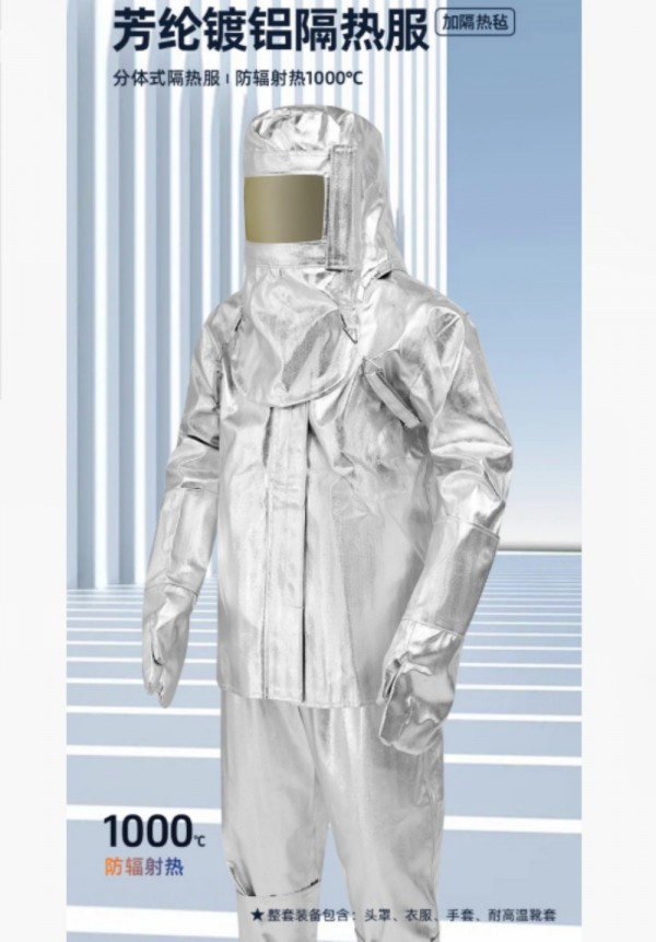 防冲击面屏有机玻璃,耐高温,热辐射,大面屏,视野开阔。连接带头罩与隔热服之间的连接带,方便固定,不易脱落。芳纶机织布采用芳纶1313机织布面料,采用镀铝工艺,具有不脱层、牢固度好、柔软的特性。
