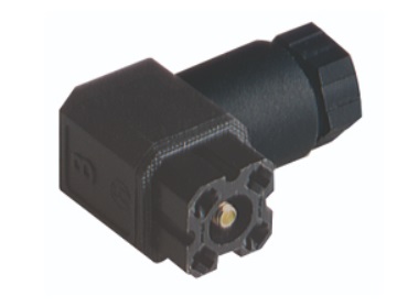 GDM - 175301-803(DIN 43650),A型,母型,18毫米,半透明外壳,2+地(保护地)。螺丝触点,带有红光LED和压敏电阻整流器的PCB板,24伏直流电,1A,黑色线头M16螺纹