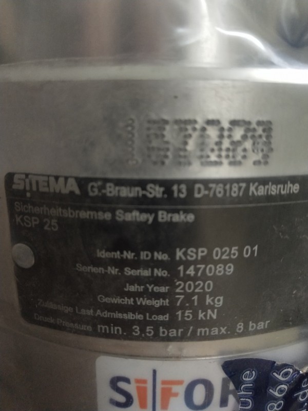 SITEMA安全的制动型KSP目的是举行一次大规模的垂直移动一个方向(反重力)。这可能是一个已经存在的缸杆或一个单独的棒。相对的安全性也可以被用来在紧急情况下负载。举力是比较大的一个方向(向下),并在其他方向(向上)相对较小。 安全刹车系统已经被应用于 -垂直或斜轴机床 -垂直轴装载机。