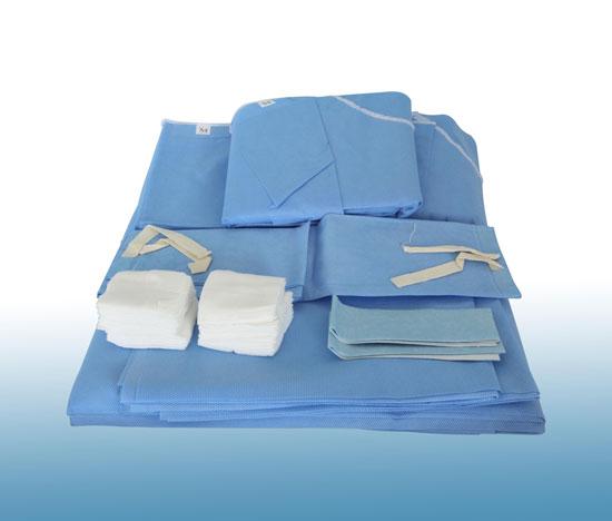 结构及组成:本产品由基本配置一次性使用手术衣、中单、剖腹单、一次性使用治疗巾和选用配置外科手套、医用脱脂纱布块、普通医用口罩、一次性使用帽子 使用手术薄膜、一次性使用包布组成。