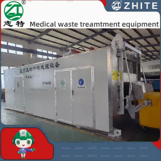 该一体化医疗废物微波处理综合处理工艺设备主要包括自动上料机组、密闭仓机组、多功能密闭双层破碎机组、微波消毒机组、出料机组、自动控制机组、废气处理机组。废水处理装置等。