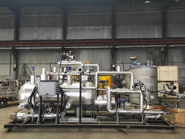 水解反应器材质采用316L不锈钢,不需要额外添加压缩空气等防腐措施即满足使用需求,使用寿命不少于30年,采用撬装模块化供货,撬装模块集成与水解器本体相连的所有阀门、管道、仪表及电伴热控制系统等。水解器模块上所有尿素溶液和氨气管线均设置电伴热系统,其电伴热系统集中显示在电伴热控制柜上显示,水解器撬装模块上还集成氨气管道自动清洗吹扫装置,水解器压力、液位测点设置冗余