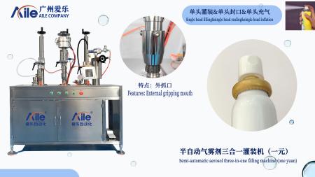 在气雾剂生产设备中,气雾灌装三合一设备以其精简高效的特点,成为众多企业的优选。它集成了灌液、封口、充气三大核心功能,通过优化流程设计,在保证生产质量的同时,显著提升了生产效率,广泛应用于日化、医药、工业喷雾等领域。