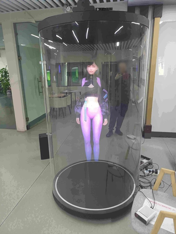 虚拟讲解员采用全息成像技术,将真人或者动画投影到选定的位置,从远处看真假难辨。通常在展馆或展厅的入口处,有一面透明的全息屏幕,当参观者走近时屏幕时会自动感知到观众的到来,透明的屏幕上会呈现出一个与真人一样大小的虚拟人物影像,做出欢迎的手势并向参观者打招呼问候,同时开始作一些关于展馆或展厅的基本介绍、功能分区、参观浏览顺序等。