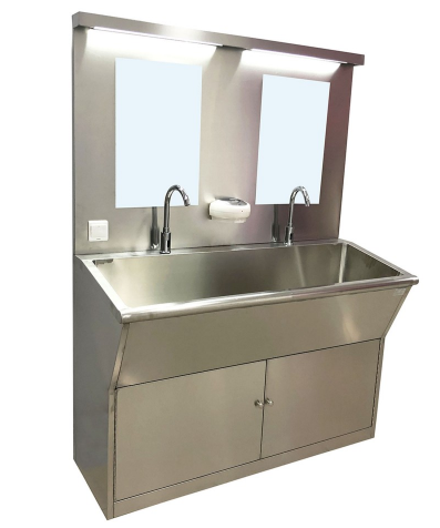 304不锈钢洗手池供应室无缝焊接两人位脚踏式出水龙刷手池