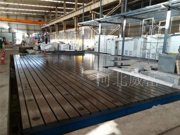 威岳产品采用高强度箱型框架结构,台面加厚处理,内部增设十字交叉加密筋板。这种设计不仅极大提升了整体刚性,更能均匀分散巨大的载荷,防止因局部受力过大而产生塌陷或裂纹。同时,我们在 T 型槽的加工上采用高频淬火工艺,使槽口硬度达到 HRC45 以上,极大增强了耐磨性。即便经过成千上万次的螺栓装夹摩擦,槽口依然锋利如初,不会因磨损超标而丧失功能。这种 “筋骨强、皮肉厚” 的结构设计,让平台在岁月的侵蚀下依然坚挺。