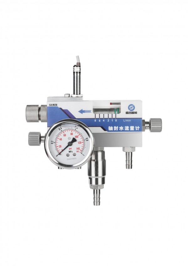 双机械轴封水流量计是用来监测和调节轴封装置内水的流量和压力,用于保护轴封的稳定运行。经过滤处理的冷却润滑水从入口进入系统配流盘,再进入流量测量单元,在测量单元内部,有一个镶着白色圆环的圆柱形浮子和透明的测量管,浮子受到流体的作用向左移动,当流量保持一定时,浮子处于静止状态,此时白色圆环就指向一个确定的流量刻度值。具有一定流量和压力的水,经过出口进入轴封装置,对轴封装置进行冷却和润滑。适用于有轴封装置(包括机械轴封和填料)的设备,如:泵,混合器,网,拌器等,同时可依据仪表的读数判断轴封的运行状况及相关问题,如泄露或堵塞,从而维护设备的正常运行。